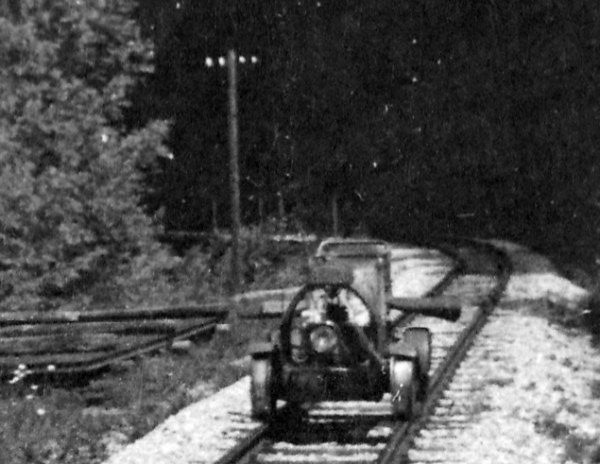 Puch Schienenmotorrad BR X711, mit Selbstbaugehäuse, Summerau, 28. 6. 1950